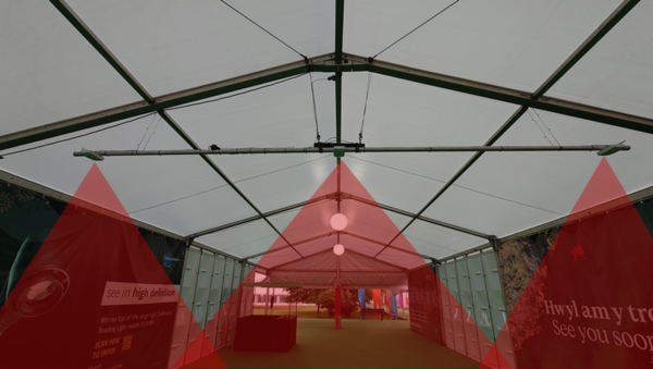The system deployed by Axiomatic covered a 10m wide main entrance, an 8m wide main exit, and a smaller secondary exit, located within marquees.